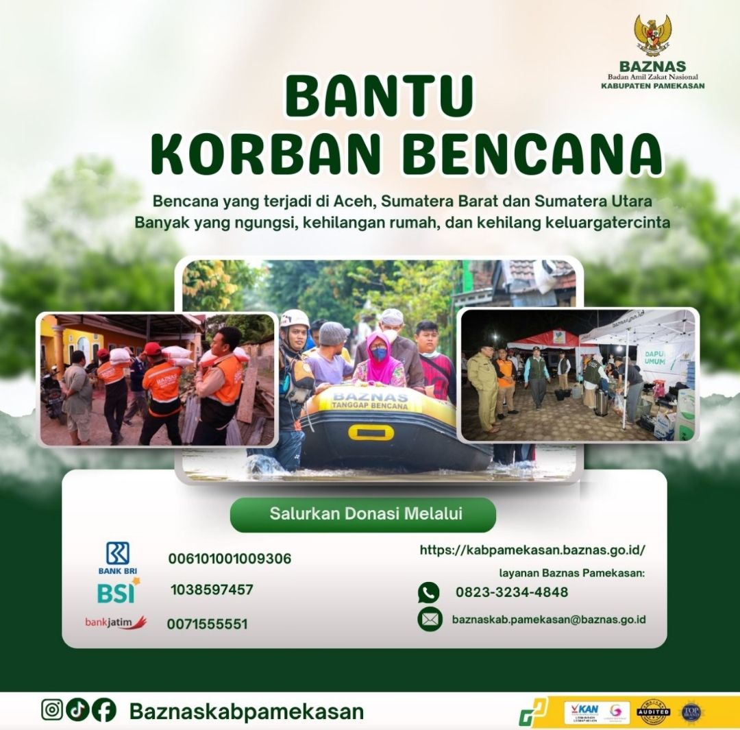 Spotnews.id – Pamekasan, Badan Amil Zakat Nasional (Baznas) Kabupaten Pamekasan melakukan penggalangan dana untuk membantu korban terdampak bencana di Provinsi Aceh, Sumatra Barat dan Sumatra Utara.